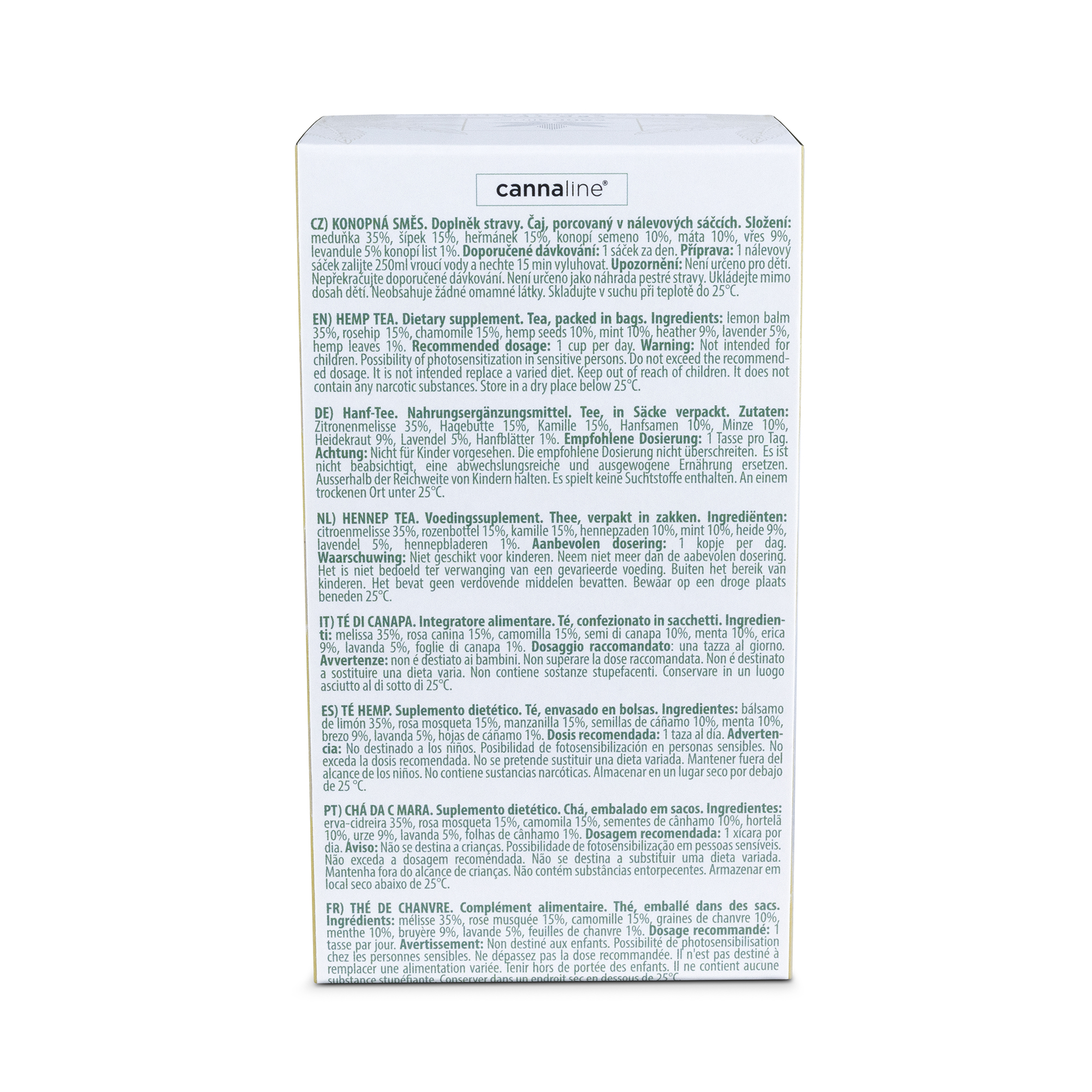 Zitronenmelisse, Kamille und Lavendel helfen, die positive Stimmung zu bewahren, fördern Entspannung und guten Schlaf. Minze erleichtert eine reibungslosere Verdauung. Heidekraut unterstützt die normale Funktion der Harnwege. Hagebutte unterstützt die Funktion von Nieren und Blase. Cannabis hat entspannende Eigenschaften.