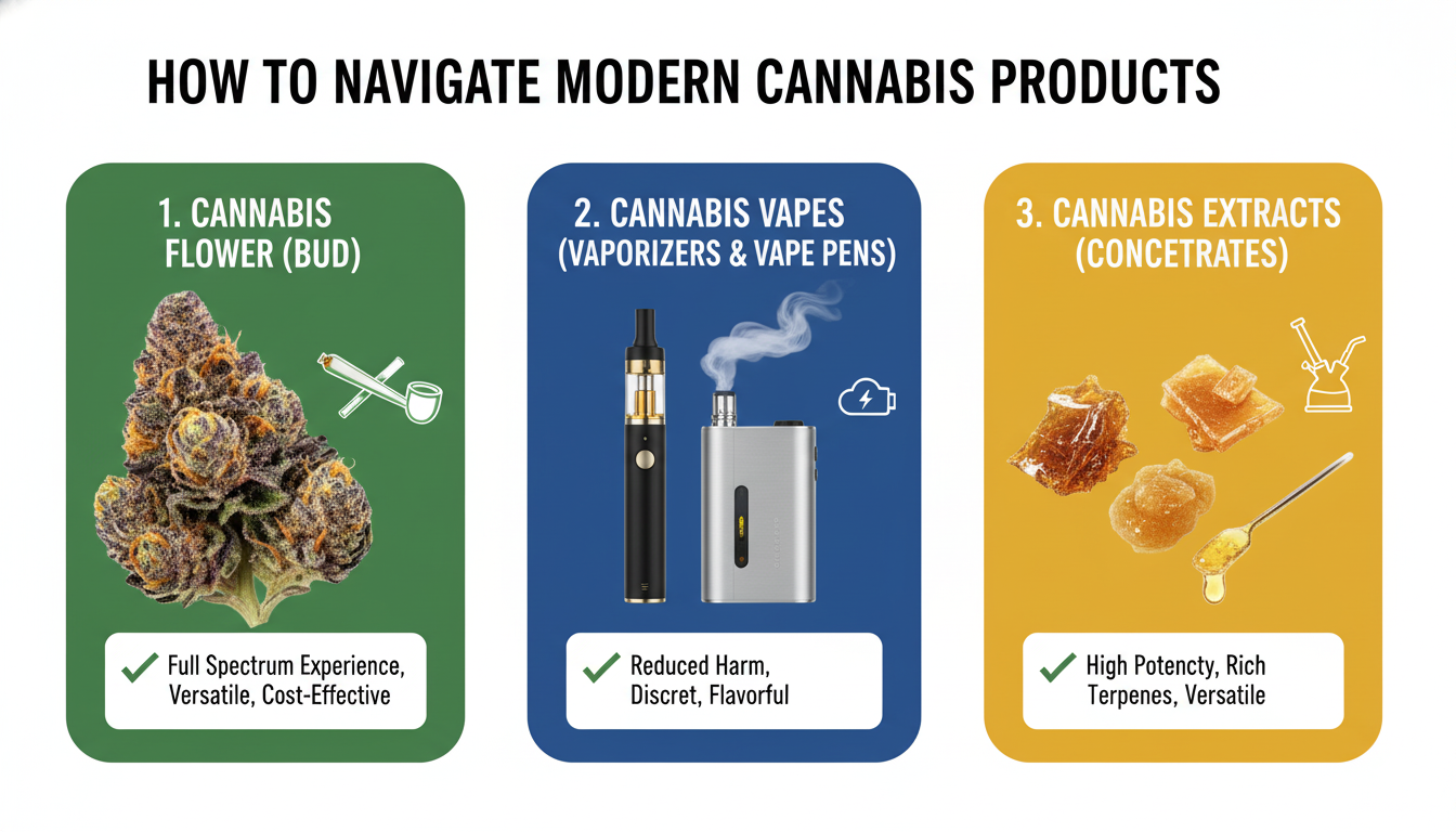 The cannabis scene has changed more in the last few years than in the entire decade before. What used to be “just a flower or an oil” has grown into a wide range of products that can easily confuse anyone: vapes, pre-rolls, flowers, extracts, carts, resins, dabs…