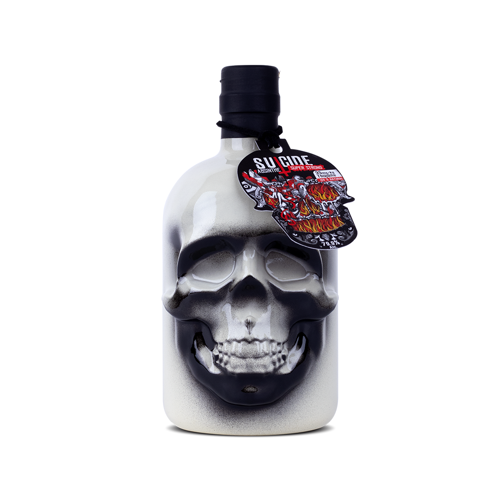 Słynący z zabójczej mocy, w 100% naturalny czeski Absynt jest sprzedawany w unikalnych butelkach z reliefami ludzkiej czaszki, które podkreślają jego naprawdę niezwykłą siłę.