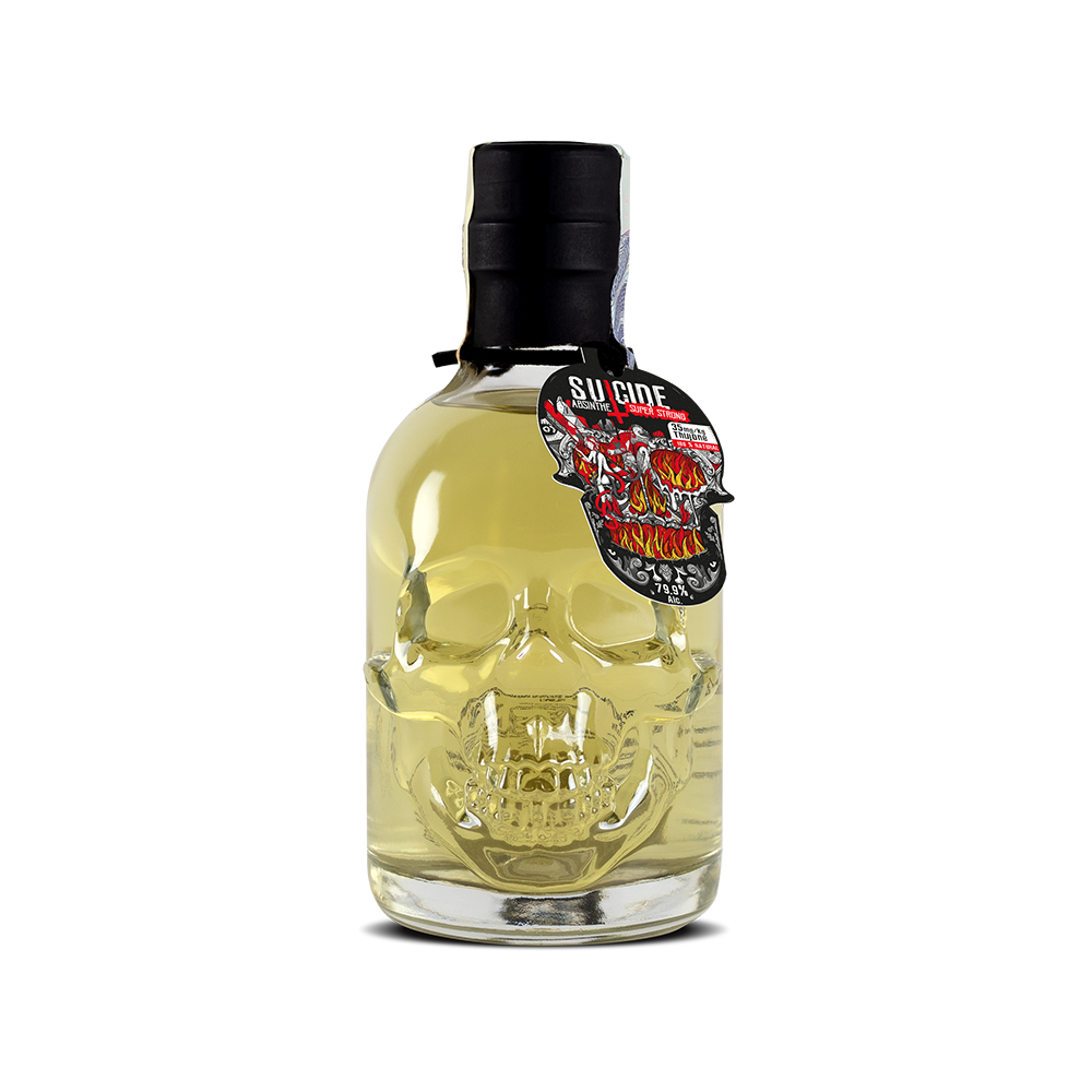 Killer strong, 100% natural Czech Absinthe is sold in unique bottles with human skull reliefs, which refers to its truly extraordinary strength.