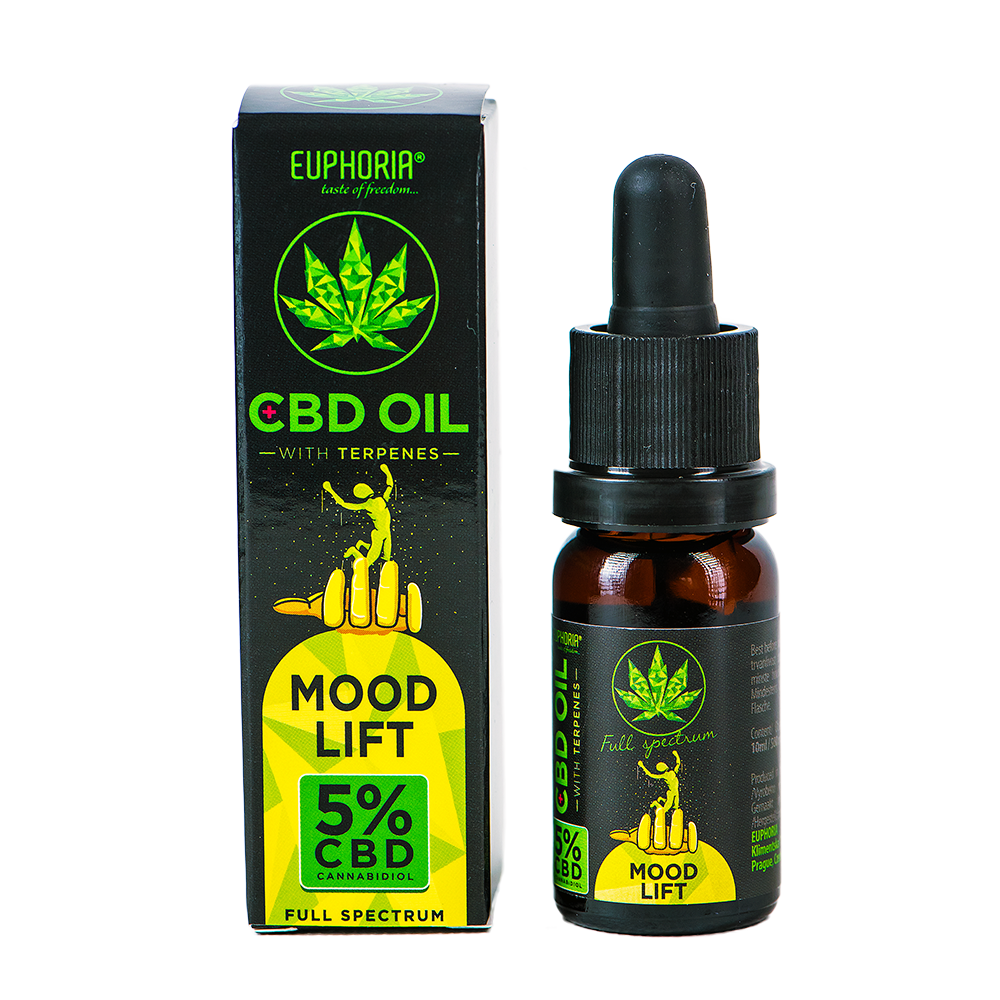 Os óleos de espectro completo EUPHORIA CBD com terpenos naturais possuem várias propriedades terapêuticas. MOOD LIFT contém 5% de canabidiol e THC, além de