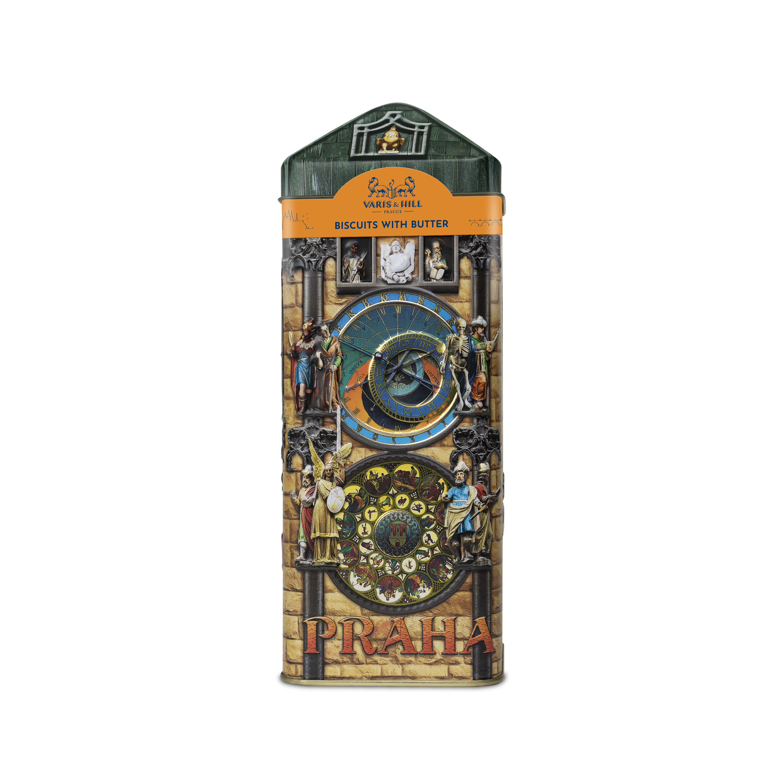 12 biscuiți cu unt într-o cutie de tablă inspirată de iconicul Ceas Astronomic din Praga constituie suvenirul sau cadoul perfect pentru oricine dorește o amintire dulce a experiențelor lor din inima Republicii Cehe. În interior, vei găsi 12 biscuiți delicioși cu unt, realizați din ingrediente atent selecționate. După ce i-ai savurat, cutia elegantă rămâne—o soluție stilată de depozitare pentru obiecte mici sau o piesă decorativă ce va păstra vie magia Pragăi.